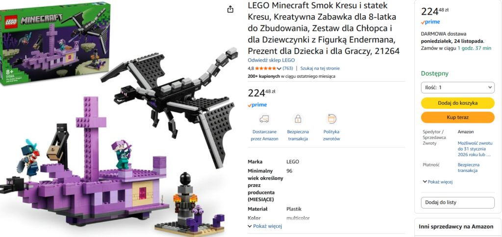 Okazja Cenowa (Minecraft) – 21264 Smok Kresu i statek Kresu