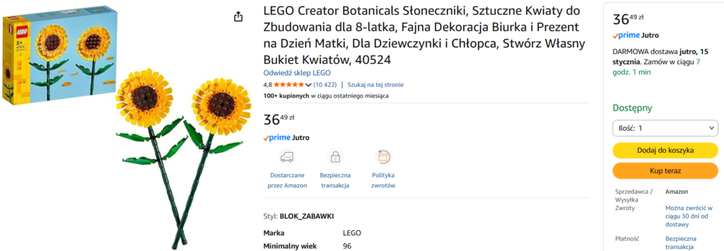 Na Amazonie pojawiła się właśnie promocja na zestaw40524 Słoneczniki.