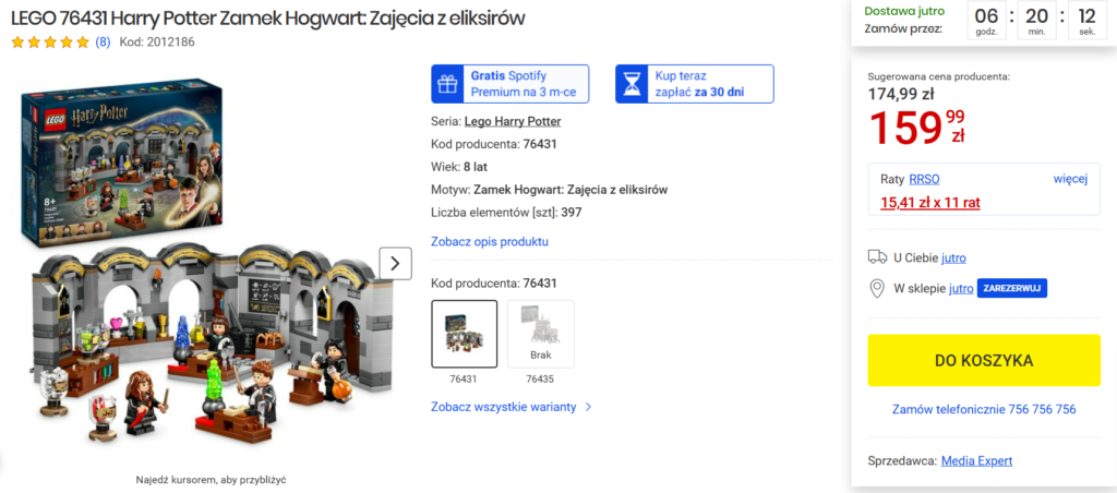W sklepie Media Expert dorwiecie chwilowo zestaw 76431 Zamek Hogwart: Zajęcia z eliksirów w okazyjnej cenie!